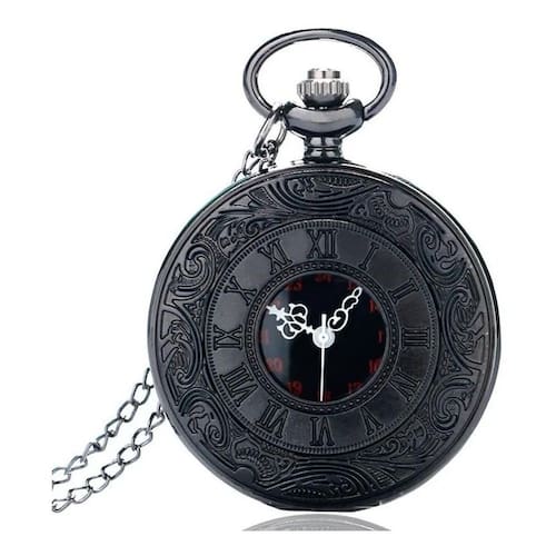 2X Relógio De Bolso Steampunk Preto Com Corrente Retro Vinta