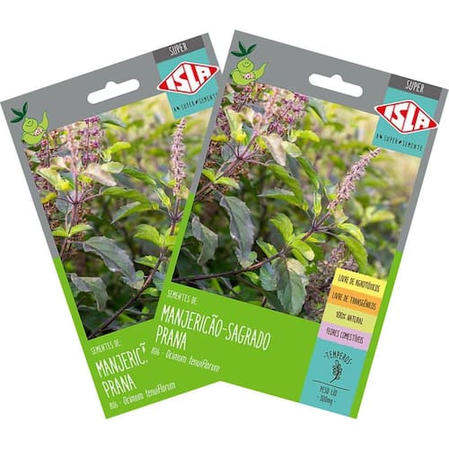 Descrição * Nome Científico: Ocimum tenuiflorum L. * O manjericão é uma das ervas mais fáceis de cultivar na horta. * Podemos plantar em vasos, floreiras e também no solo.* Em meio aos canteiros ou formando um efeito de bordadura ao redor dos cultivos principais. * O manjericão sagrado, é uma planta aromática e com folhas de coloração verde-claras. * Atinge 30-60 cm de altura e suas flores são usadas para fins medicinais.