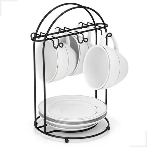 2X Suporte Organizador Para Xícaras E Pires De Café Aço Pret