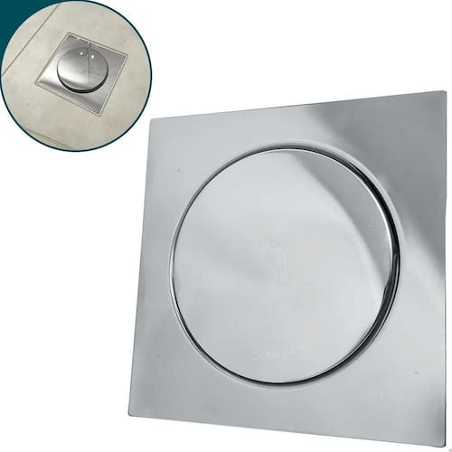2X Tampa Ralo Click 15X15 De Banheiro Inox Quadrado Intelige