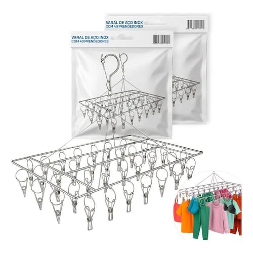 2X Varal Retratil Calcinha Cueca Meias Multiuso 40 Prendedor