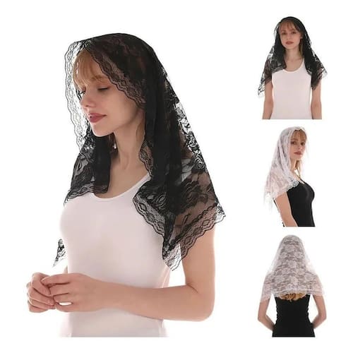 2X Véu Congregação Ccb Ou Católica Renda Boradado Preto Bran