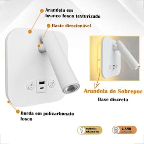 - Arandela sobrepor LED Branca com USB e USB-C - Design Moderno e Funcionalidade na Medida Certa