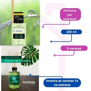 Conteúdo da embalagem: - 3 frasco aromatizador de ambiente - 280 ml mesmo aroma - 5 varetas difusoras - fragrância: capim limão, gotas de orvalho ou chá branco selecionar no momento da compra O kit corresponde a 3 difusores do mesmo aroma