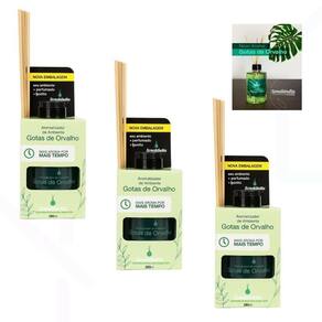 Conteúdo da embalagem: - 3 frasco aromatizador de ambiente - 280 ml mesmo aroma - 5 varetas difusoras - fragrância: capim limão, gotas de orvalho ou chá branco selecionar no momento da compra O kit corresponde a 3 difusores do mesmo aroma