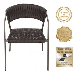 3 Cadeiras Atenas Tricô Náutico e Alumínio Edícula e Cozinha Trama - Marrom Chocolate