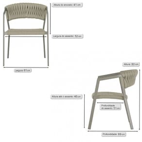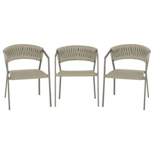 3 Cadeiras Atenas Tricô Náutico e Alumínio Edícula e Cozinha Trama - Bege
