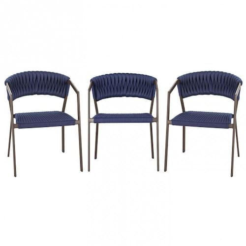 3 Cadeiras Atenas Tricô Náutico e Alumínio Edícula e Cozinha Trama - Azul