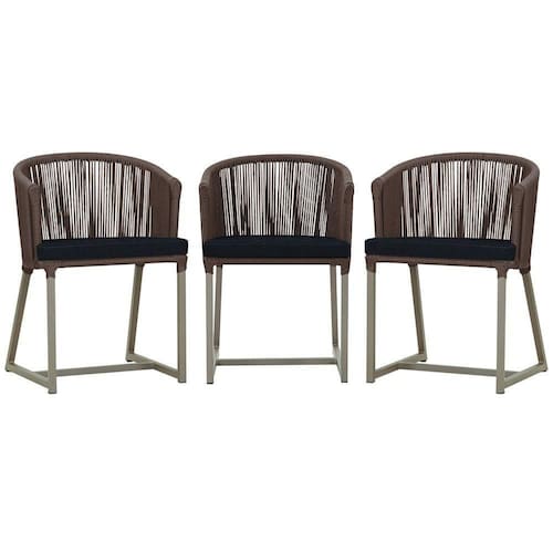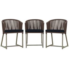 3 Cadeiras De Jantar Noronha Fendi Corda Náutica E12 Trama Marrom