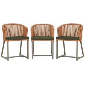 3 Cadeiras De Jantar Noronha Fendi Corda Náutica E13 Trama Terra Cota