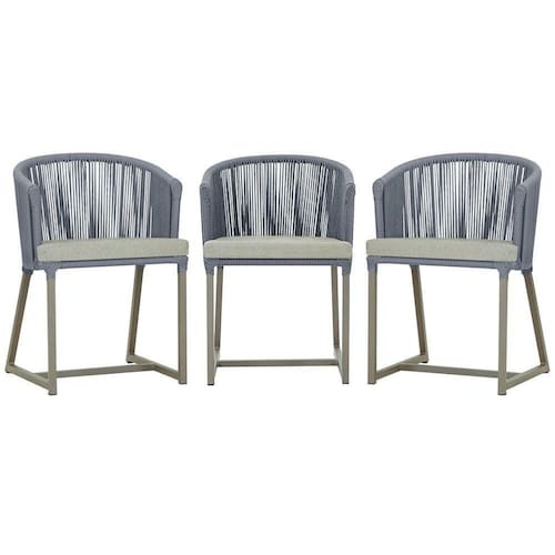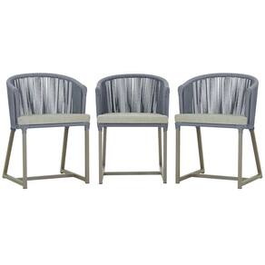3 Cadeiras De Jantar Noronha Fendi Corda Náutica E3 Trama Prata