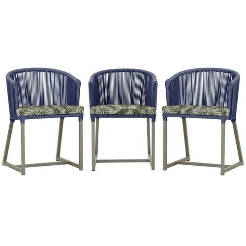3 Cadeiras De Jantar Noronha Fendi Corda Náutica E5 Trama Azul