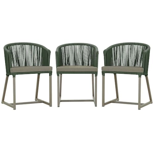 3 Cadeiras De Jantar Noronha Fendi Corda Náutica E8 Trama Verde
