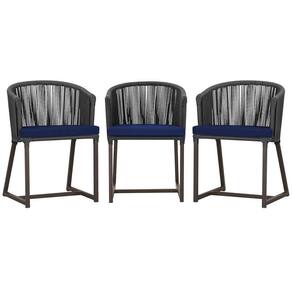 3 Cadeiras De Jantar Noronha Marrom Corda Náutica E10 Trama Preto