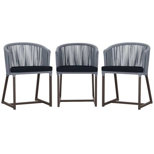 3 Cadeiras De Jantar Noronha Marrom Corda Náutica E12 Trama Prata