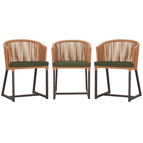 3 Cadeiras De Jantar Noronha Marrom Corda Náutica E13 Trama Terra Cota