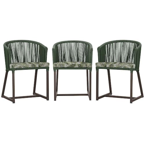3 Cadeiras De Jantar Noronha Marrom Corda Náutica E5 Trama Verde
