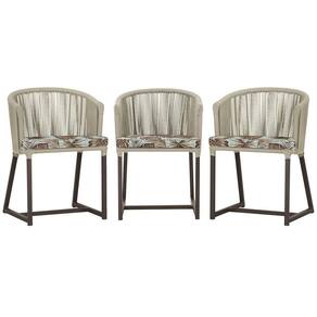 3 Cadeiras De Jantar Noronha Marrom Corda Náutica E6 Trama Rami