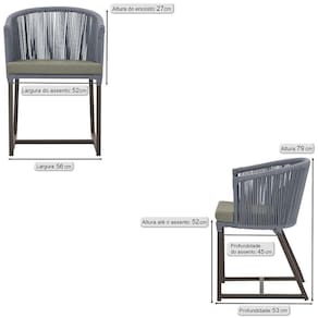 Antes de comprar o seu produto verifique as medidas, o onde pretende instalar e se necessario contratar o servico de um qualificado. Produto conhecido como: Cadeira Noronha, Cadeira de aluminio, Corda nautica, Estofado impermeavel, Moveis de exterior, Cadeira resistente a agua, Design moderno em Cadeira, Cadeira para area externa, Cadeira de jardim, Moveis para varanda, Cadeira duravel, Cadeira de alta qualidade, Conforto em Cadeira, Cadeira elegante.