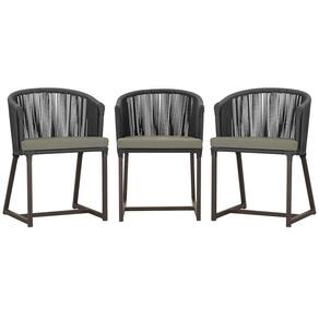 3 Cadeiras De Jantar Noronha Marrom Corda Náutica E8 Trama Preto