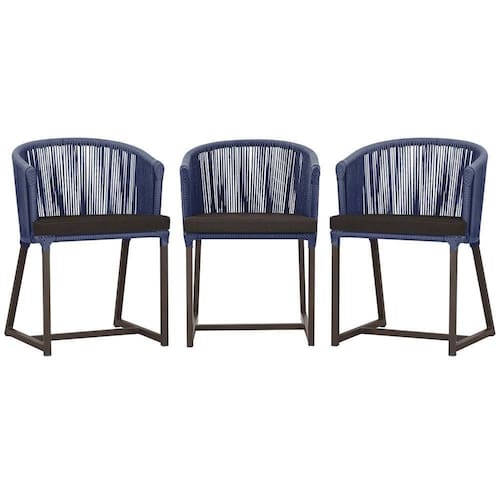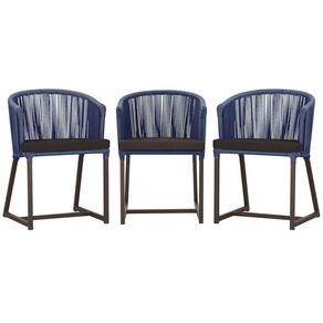 3 Cadeiras De Jantar Noronha Marrom Corda Náutica E9 Trama Azul