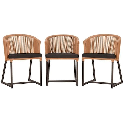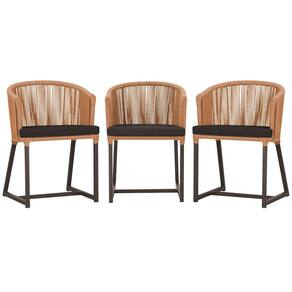 3 Cadeiras De Jantar Noronha Marrom Corda Náutica E9 Trama Terra Cota