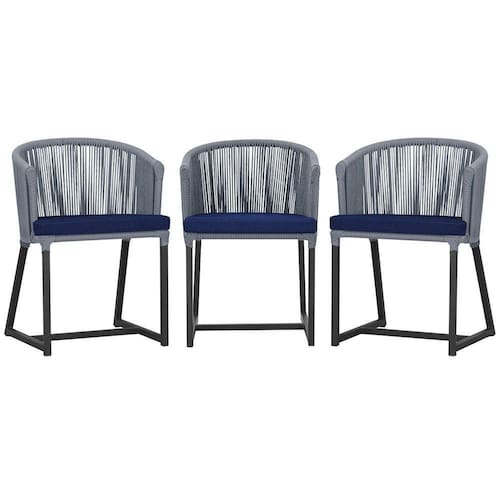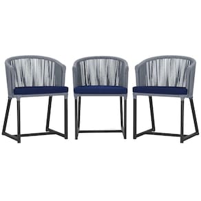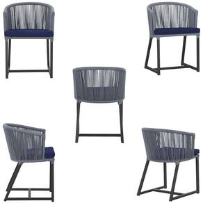 3 Cadeiras De Jantar Noronha Preta Corda Náutica E10 Trama Prata