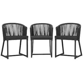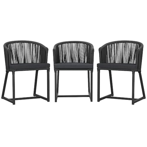 3 Cadeiras De Jantar Noronha Preta Corda Náutica E11 Trama Preto