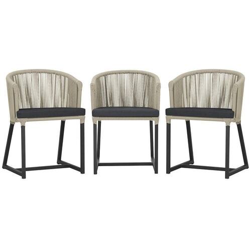 3 Cadeiras De Jantar Noronha Preta Corda Náutica E11 Trama Rami