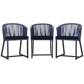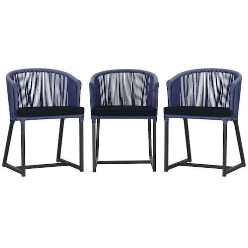 3 Cadeiras De Jantar Noronha Preta Corda Náutica E12 Trama Azul