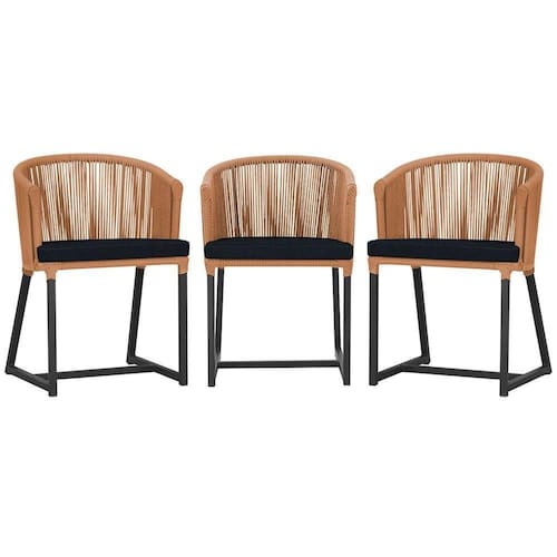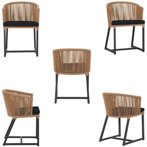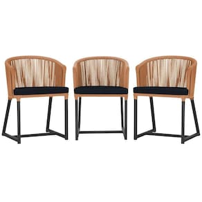 3 Cadeiras De Jantar Noronha Preta Corda Náutica E12 Trama Terra Cota