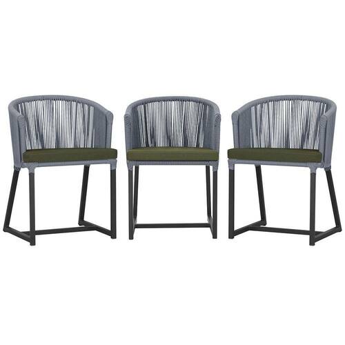 3 Cadeiras De Jantar Noronha Preta Corda Náutica E13 Trama Prata