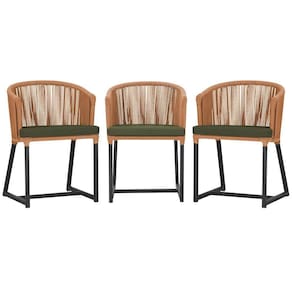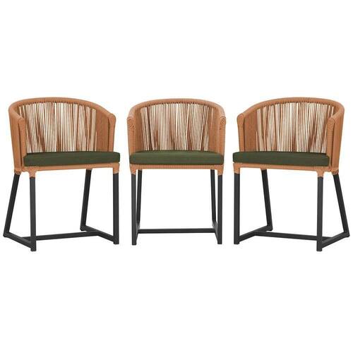 3 Cadeiras De Jantar Noronha Preta Corda Náutica E13 Trama Terra Cota