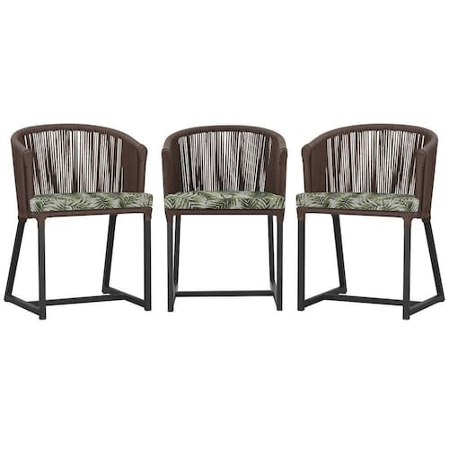 3 Cadeiras De Jantar Noronha Preta Corda Náutica E5 Trama Marrom