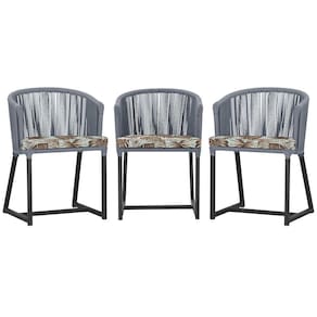 3 Cadeiras De Jantar Noronha Preta Corda Náutica E6 Trama Prata