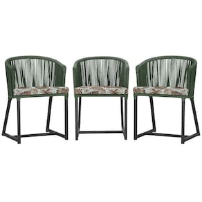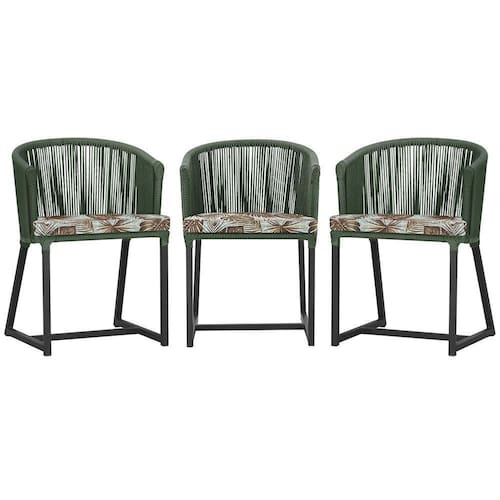 3 Cadeiras De Jantar Noronha Preta Corda Náutica E6 Trama Verde