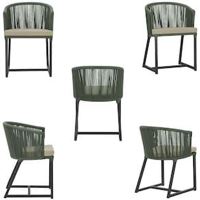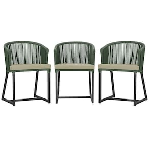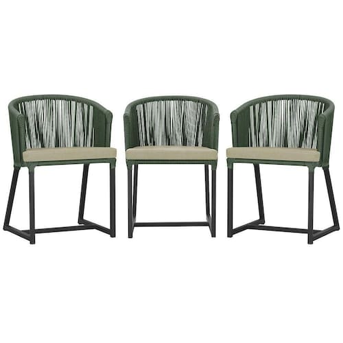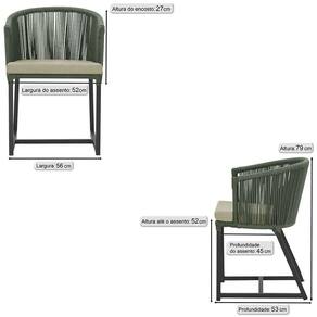 3 Cadeiras De Jantar Noronha Preta Corda Náutica E7 Trama Verde