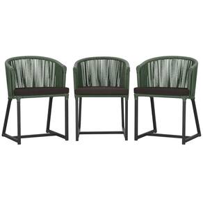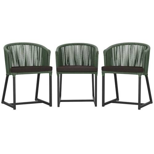 3 Cadeiras De Jantar Noronha Preta Corda Náutica E9 Trama Verde