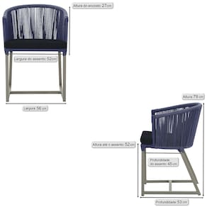Antes de comprar o seu produto verifique as medidas, o local onde pretende instalar e se necessário contratar o serviço de um profissional qualificado. Produto conhecido como: Cadeira Noronha, Cadeira de alumínio, Corda náutica, Estofado impermeável, Móveis de exterior, Cadeira resistente à água, Design moderno em Cadeira, Cadeira para área externa, Cadeira de jardim, Móveis para varanda, Cadeira durável, Cadeira de alta qualidade, Conforto em Cadeira, Cadeira elegante.