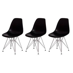 3 Cadeiras Eiffel Eames Preta Base Cromada - Preto
