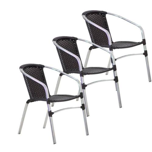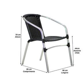 3 Cadeiras Floripa em Alumínio Para Cozinha, Área, Jardim, Jantar Trama - Preto