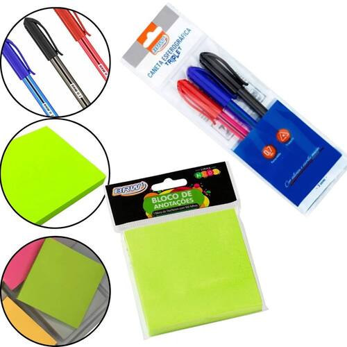 3 caneta esferográfica .7mm+bloco de notas verde 7,5x7,5cm 3 caneta esferográfica .7mm+bloco de notas verde 7,5x7,5cm