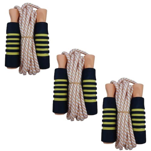 Unidades no kit: 3 Cordas laranja Material do Produto: Nylon, plástico e borracha Cor da Manopla: Amarelo, laranja e preto emborrachado Tamanho total da manopla: 13 cm Tamanho da parte emborrachada da manopla para colocar as mãos: 10 cm Cor da corda: Laranja e branco listrado Tamanho da corda: 2,70 metros ajustável