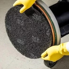 o disco preto removedor scotch-brite tm é um disco de limpeza pesada referência no mercado de limpeza profissional. É utilizado com solução de removedor de ceras, para remoção de acabamentos antigos, bases seladoras e contaminantes da superfície do piso. De grande durabilidade, mantém uma performance consistente durante toda sua vida útil. Utilizado em enceradeiras ou limpadoras automáticas de baixa rotação 175 - 300 rpm . Modo de usar: remova toda a sujeira do piso com mop antes da remoção. Utilize o aviso de piso escorregadio. Aplique o removedor de ceras scotch-brite tm no local desejado com mop água, deixando o piso uniformemente umedecido. Deixe o produto químico agir de dois a cinco minutos. Utilize a enceradeira de baixa rotação em conjunto com o disco preto removedor scotch-brite tm para piso, para remover todas as camadas de acabamento do piso. Remova toda solução remanescente no piso camadas de acabamento dissolvidas, sujeiras e produto removedor de ceras com um mop ou aspirador de líquidos. Espere o piso secar antes de aplicar um acabamento novo.