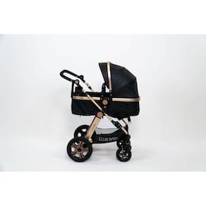 As rodas dianteiras tem alcance de 360° com pneus macios, sistema inovador que torna fácil o passeio do Carrinho de Bebê Luxo Club Baby em terrenos e calçadas irregulares, fazendo com que o bebê não sinta o impacto.