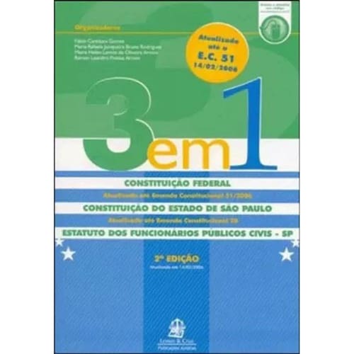 Este livro traz em sua série de legislação, pela primeira vez as Constituições Federal, Paulista e ainda o Estatuto dos Funcionários Públicos Civis do estado de São Paulo, todos em um só volume. Desta forma torna - se ainda mais prático, tanto para o acadêmico como para o profissional do Direito, a consulta a estas legislações. Devidamente atualizadas até as últimas emendas constitucionais, bem como com remissões à legislação infraconstituicional. Elaborada em formato específico para o trato diário do profissional e do acadêmico, esta obra é ainda indispensável no estudo para concursos federais e estaduais. Ean: 9788588839380