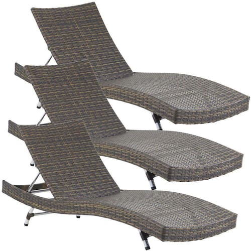 3 Espreguiçadeira Bona Em Alumínio E Fibra Sintética Trama - Marrom Chocolate