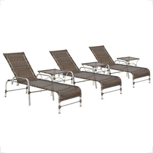 3 Espreguiçadeira Catar E 3 Mesa Garden Alumínio E Fibra Argila