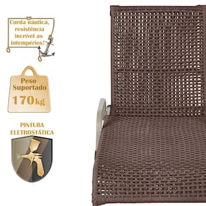 Produto conhecido como: Espreguiçadeira reclinável, Espreguiçadeira em alumínio, Espreguiçadeira com encosto ajustável, Espreguiçadeira para área externa, Espreguiçadeira para piscina, Espreguiçadeira resistente ao tempo, Espreguiçadeira moderna, Espreguiçadeira confortável, Móveis para área externa, Móveis de alumínio para jardim, Corda náutica para móveis, Espreguiçadeira leve e durável, Design sofisticado para áreas externas, Decoração para varanda e piscina, Espreguiçadeira resistente ao sol e chuva