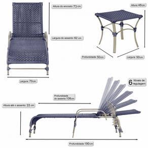 3 Espreguiçadeiras Catar e 3 Mesas Trama - Azul
